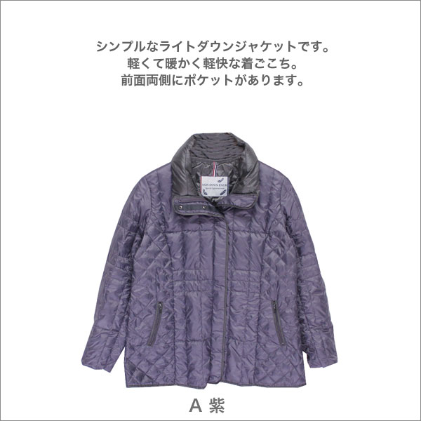 ライトダウンジャケット レディース 秋冬用 長袖 中綿入り パープル ML